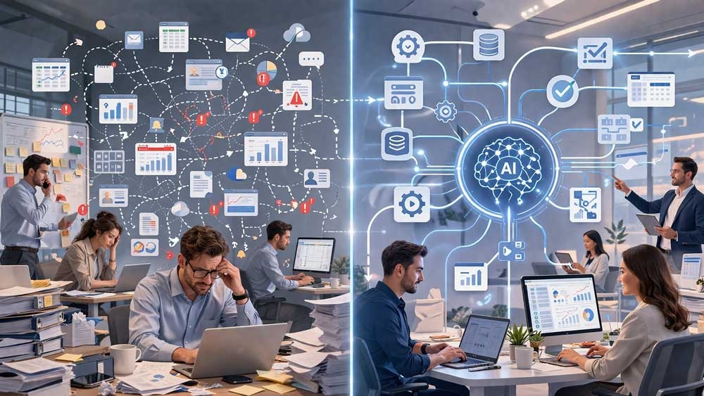 Data moves manually between systems. Decisions rely on outdated reports. Teams spend more time coordinating than executing.